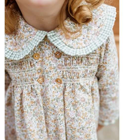 Vestido flores cuadros vichy verde