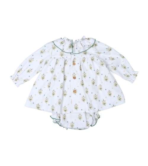 Vestido flores cuadros vichy verde