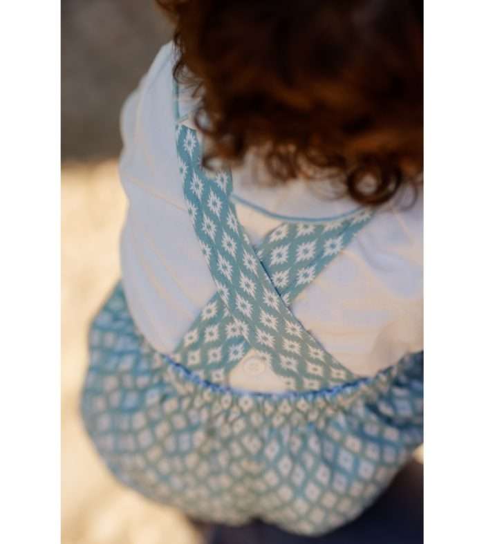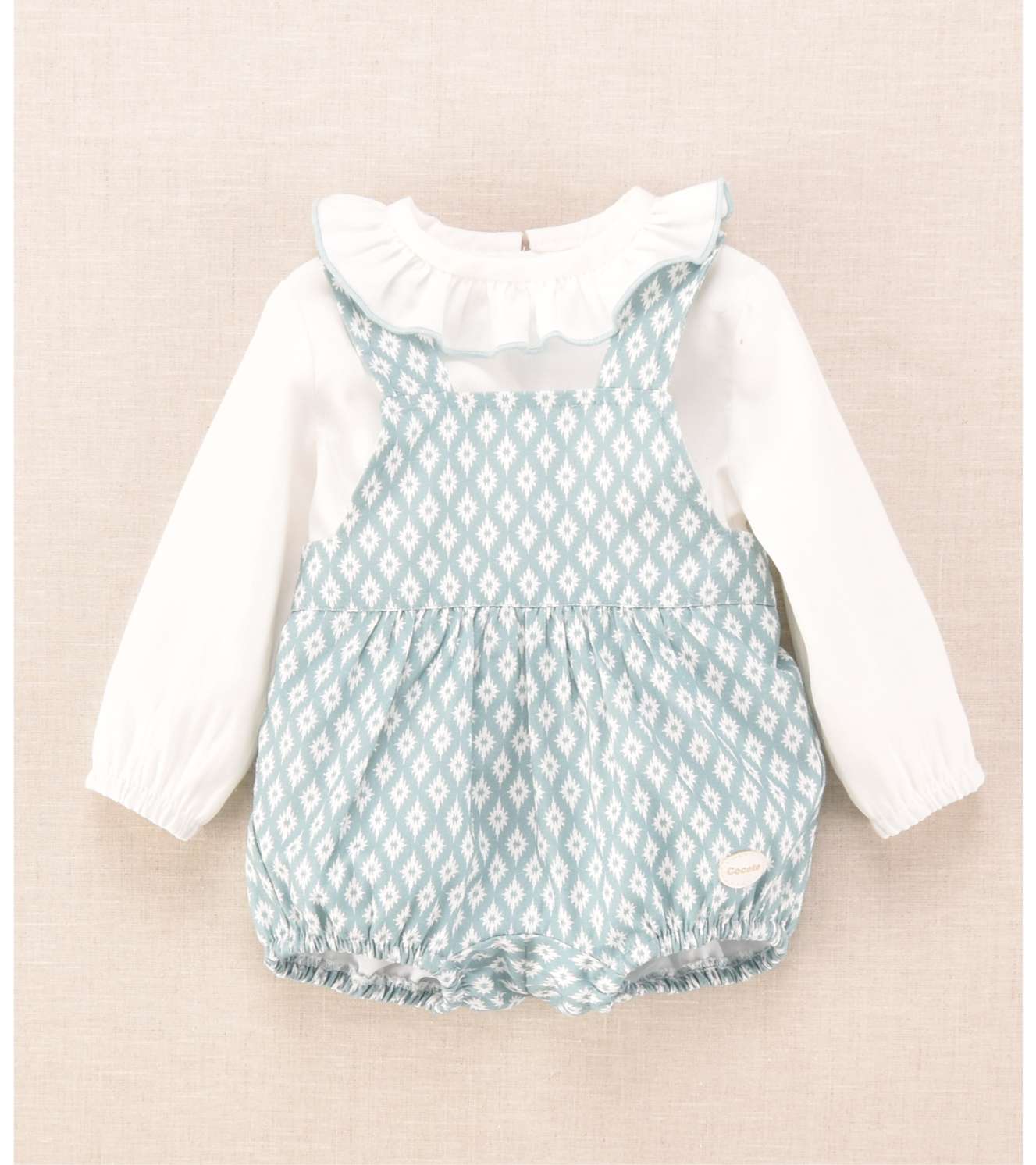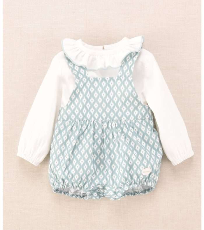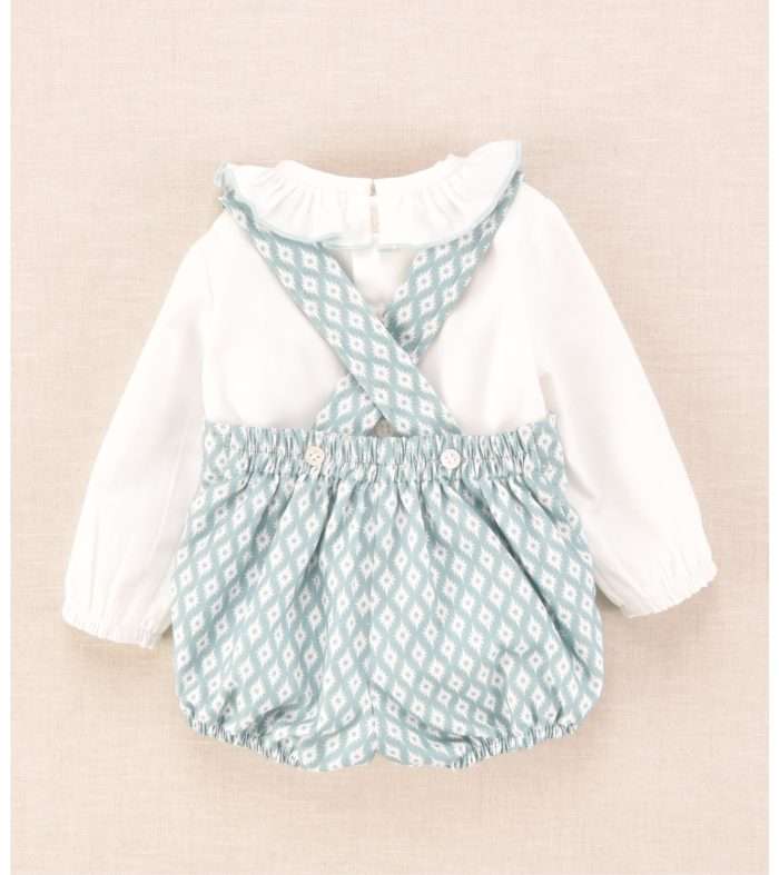 Conjunto ranita y blusa a juego estampado rombos turquesa.